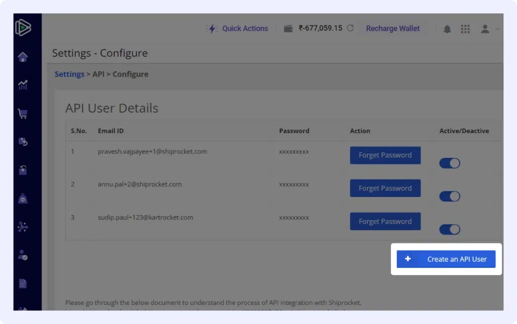 Open your Shiprocket account and navigate to the left-hand panel.